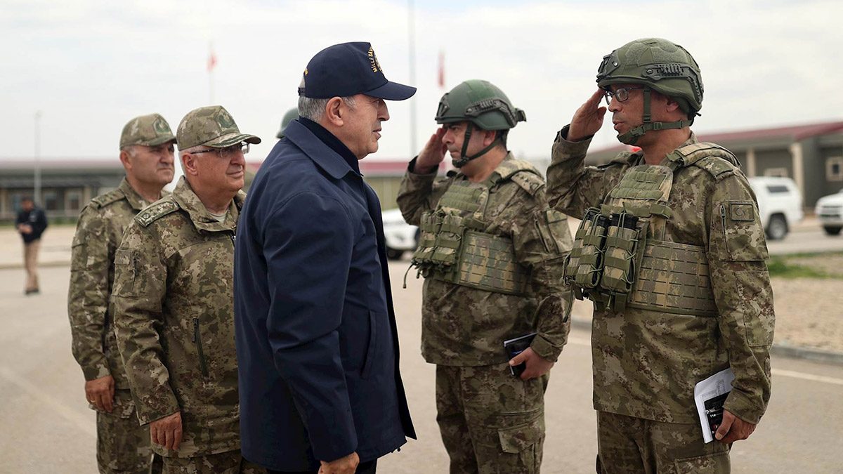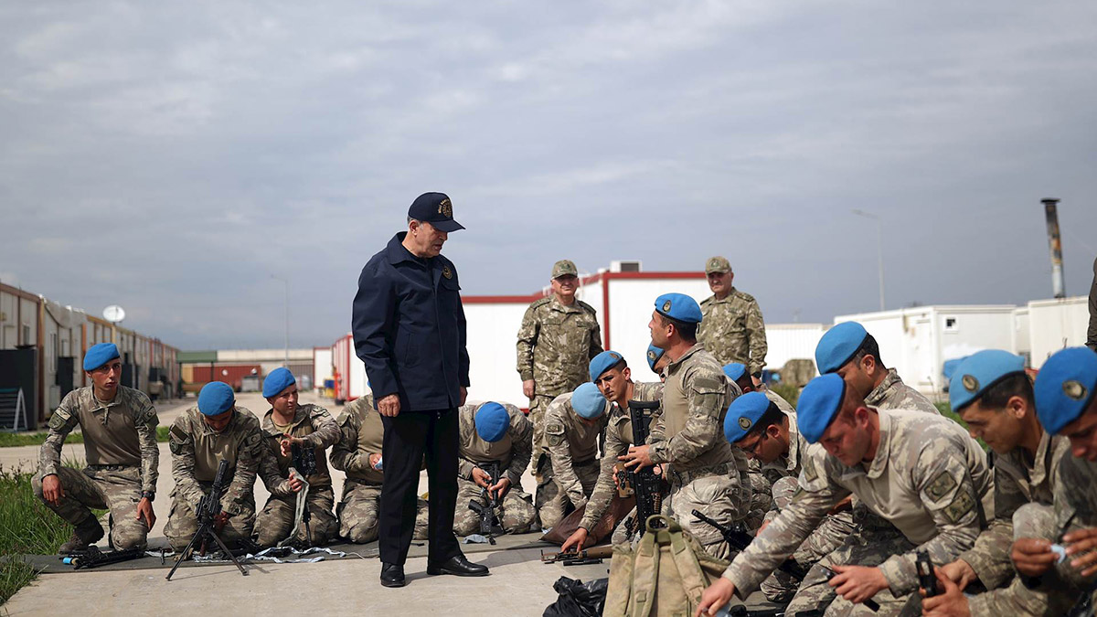 Bakan Akar ile Genelkurmay Başkanı Orgeneral Yaşar Güler, Hatay’da Suriye’nin kuzeyindeki Bahar Kalkanı ve Zeytin Dalı harekat bölgelerinin desteklendiği Kumlu Üs Bölgesi’ni ziyaret etti. Akar, komutanlık binasında gerçekleştirilen brifingin ardından pikabın kasasına binip, birliğin içinde dolaştı. Silah bakımı yapan komando bölüğünün yanına giden Akar, faaliyetlerine ilişkin bilgi aldı. Bakımı yapılan silahları da inceleyen Akar, komandolara ‘Göreve hazır mısınız’ diye sordu. Komandolar da Akar’a, ‘Daima hazırız’ yanıtını verdi.