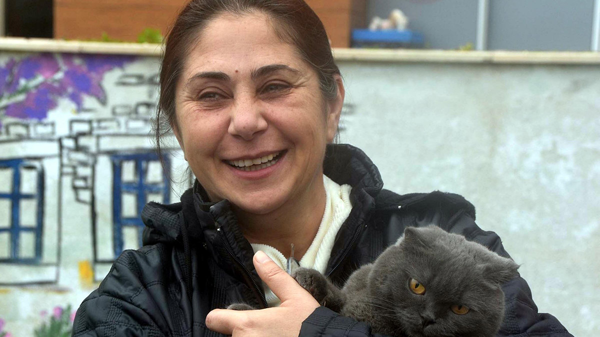 Kahramanmaraş merkezli 6 Şubat’taki depremlerden sonra kızı Sude Kayı (19) ile evleri hasar gördüğü için Hatay İskenderun’dan Muğla’nın Bodrum ilçesine gelen Ceylan Altun (45), deprem sonrası kaybolan kedilerine kavuştu.