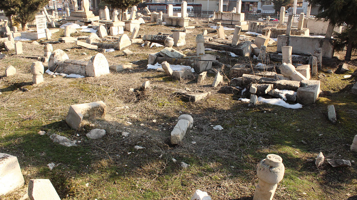Malatya’da, Kahramanmaraş merkezli depremlerde 250 yıllık Sancaktar Mezarlığı’ndaki çok sayıda mezar taşı, devrilerek kırıldı.