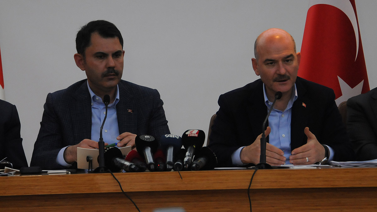 Düzce’de gün boyunca depremin olumsuz etkilediği noktalarda inceleme yapan ve yetkililerden bilgi alan İçişleri Bakanı Süleyman Soylu ile Çevre, Şehircilik ve İklim Değişikliği Bakanı Murat Kurum akşam saatlerinde Düzce Valiliği’ne gelerek toplantı yaptı. Yaklaşık 2 saat süren toplantının ardından iki bakan, genel durumla ilgili değerlendirmelerde bulundu. Deprem nedeniyle konut ve eşya zararı bulunan kişilere çeşitli bakanlıklar ve AFAD tarafından ilk etapta 27 milyon liralık ödenek ayrıldığını belirten Bakan Soylu, kimsenin mağdur edilmeyeceğini söyledi.