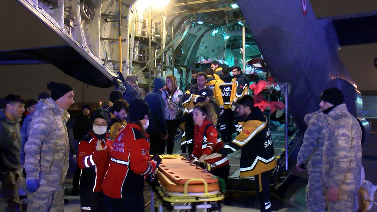 Depremde yaralanan 46 kişi daha askeri kargo uçağıyla İstanbul’a getirilerek hastanelere sevk edildi.