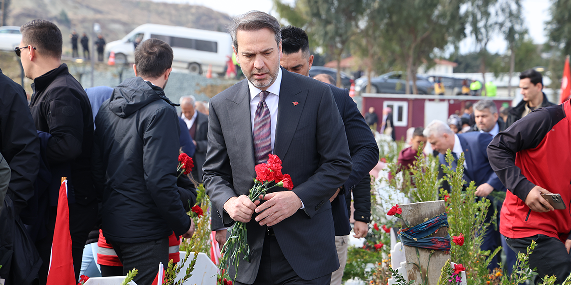 Milli Savunma Bakanı Yaşar Güler, Ticaret Bakanı Ömer Bolat ile Enerji ve Tabii Kaynaklar Bakanı Alparslan Bayraktar, Hatay’da 2 yıl önce 6 Şubat depremlerinde hayatını kaybedenlerin defnedildiği Narlıca Deprem Şehitleri Mezarlığı’nı ziyaret etti. Bakanlara, Vali Mustafa Masatlı ile kent protokolü de eşlik etti. Mezarlara karanfil bırakan bakanlar, hayatını kaybedenlerin yakınlarına başsağlığı dileyip sohbet etti. Dua eden bakanlar daha sonra TOKİ konutlarında düzenlenecek törene katılmak için mezarlıktan ayrıldı.