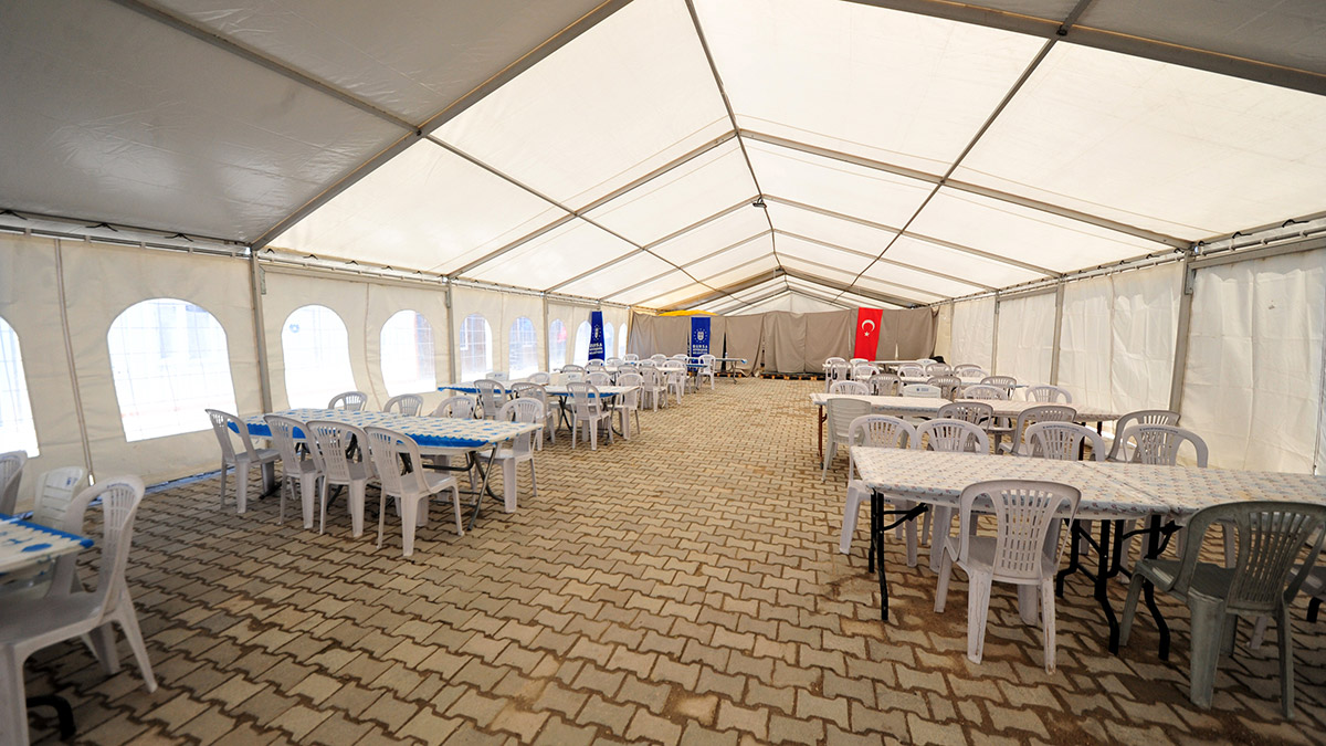 Depremlerin vurduğu Hatay’da ramazan hazırlıkları başladı. Birçok kurum ve kuruluş, Hatay’ın dört bir noktasında iftar çadırı kurdu. İftar çadırlarında sahur servisi de yapılması planlandı. Bursa Büyükşehir Belediyesi de ramazan ayı boyunca 2 bin 500 depremzedeye sahur ve iftar vermek için, 4 noktada çadır kurdu. Kente hurma gibi ramazan ayına özel yiyecekler getirildi. İftar ve sahurun hazırlanacağı mutfak görüntülenirken, çadırların ramazan ayının ilk günü itibariyle faaliyete geçeceği bildirildi.