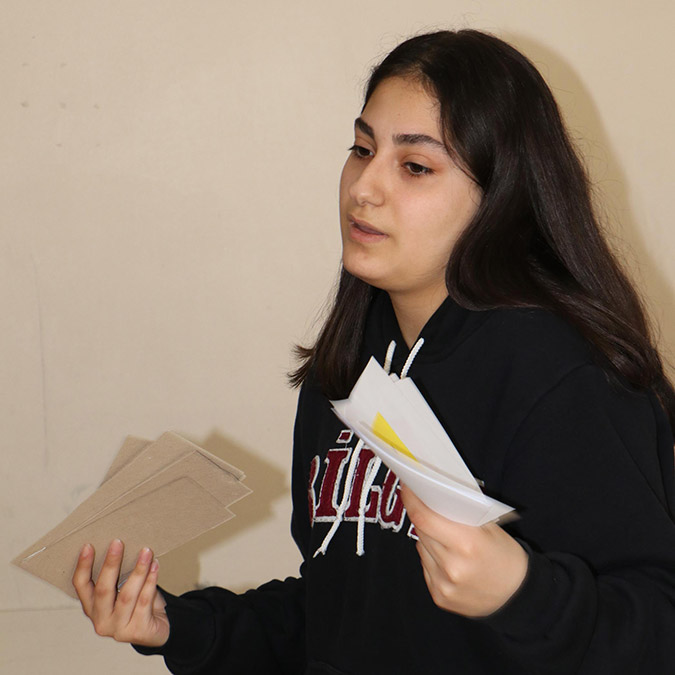 Eğitim hayatıma başladım ama kafam çok dağınıktı yaşadıklarımızdan dolayı kendimi dersime veremiyordum. İnkılap tarihi dersinde konular üzerinde hakimiyet kuramıyordum. Evde kendi kendime uğraşırken oyun tasarladım. 6 farklı konu başlığı belirledim. Her konuya da ayrı bir renk verdim. Sonra başlıklarını belirlediğim konularla ilgili notları küçük not kağıtlarına yazarak arka tarafına da hangi konuya aitse onun rengini yapıştırdım. Sonra sınıfta arkadaşlarla uyguladık. 14 kişilik sınıfımızda 7’şerli gruplara ayrılarak not kağıtlarını okuduktan sonra konu başlığı ve rengine göre yerleştirdik.