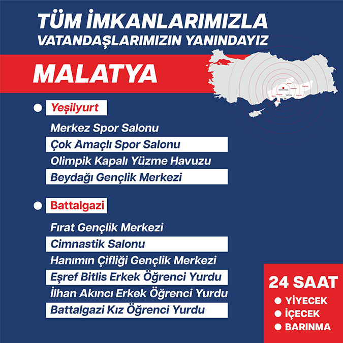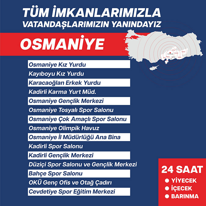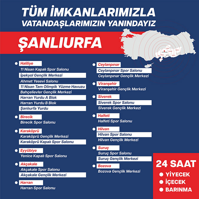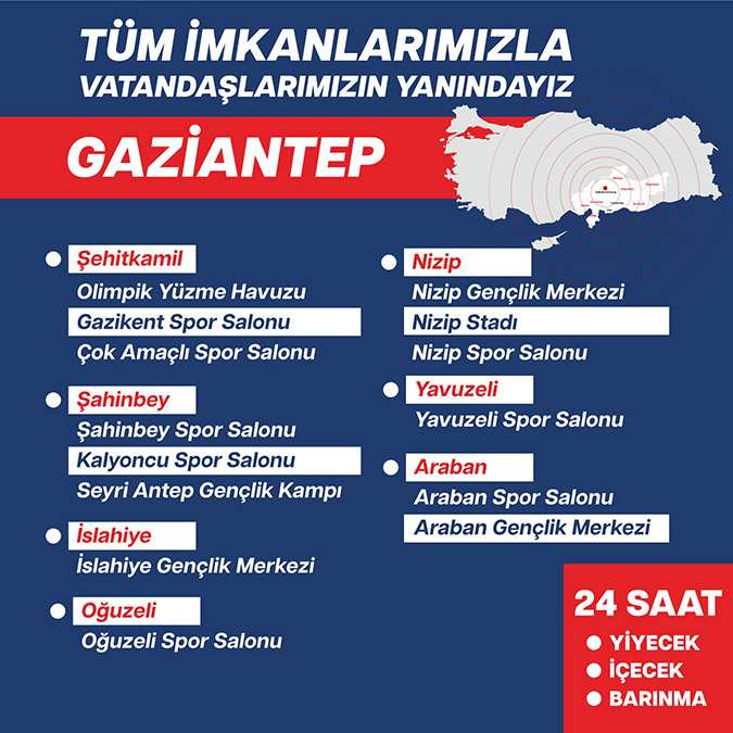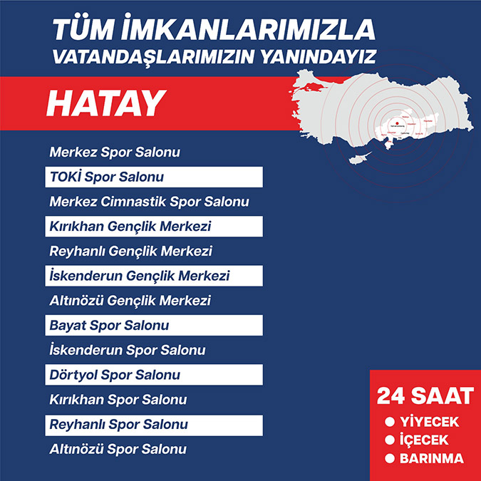 Depremzedelerin kullanımına açılan 10 ildeki tesis ve salonlar şöyle: