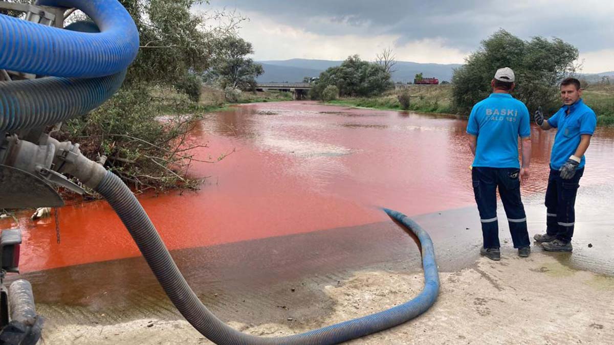 Bakanlıktan yapılan açıklamada, Balıkesir’in Susurluk ilçesine bağlı Karapürçek Mahallesi’ndeki dere yatağında kırmızı renkte kirlilik oluştuğu ihbarı üzerine bakanlık personelinin çalışma gerçekleştirdiği belirtilerek, “Bakanlık denetim ekipleri, bölgede yaptıkları inceleme sonucu mahalle kanalizasyonunun dereye deşarj noktasından numune alarak akredite laboratuvarına teslim etti.