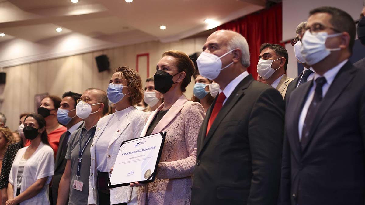 Dokuz Eylül Üniversitesi (DEÜ), Yükseköğretim Kalite Kurulu (YÖKAK) tarafından yürütülen ‘2021 Kurumsal Akreditasyon Programı’ kapsamında Kurumsal Akreditasyon Belgesi’ni YÖKAK Başkanı Prof. Dr. Muhsin Kar’ın elinden aldı.