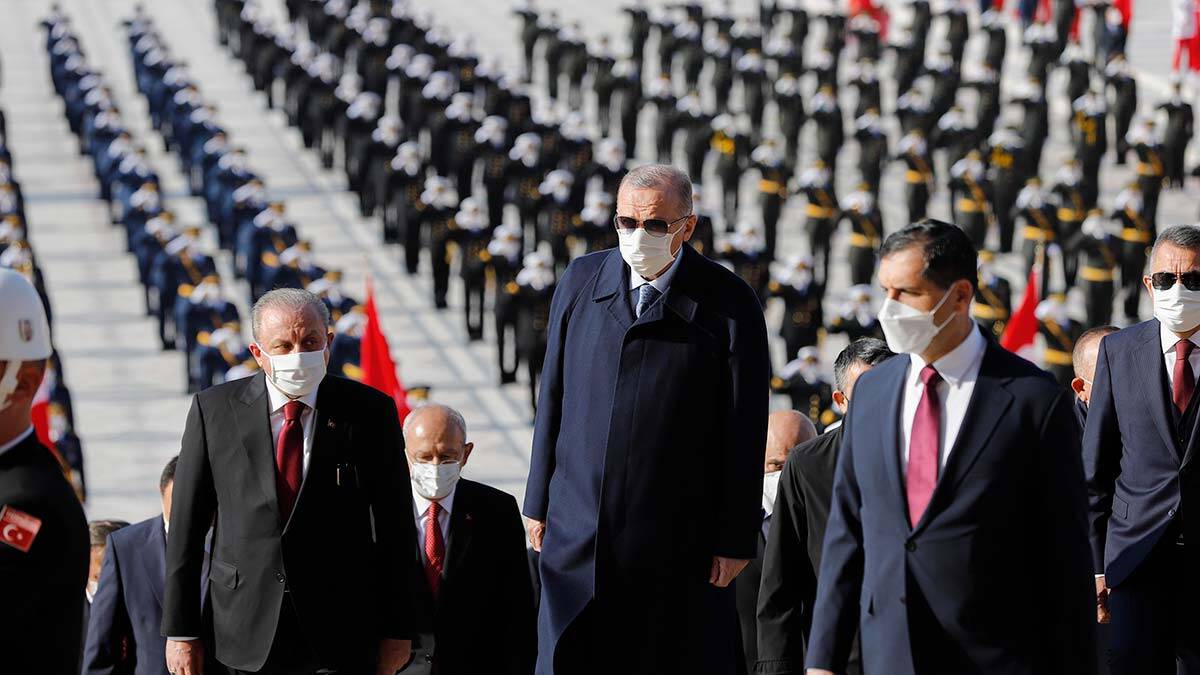 Cumhurbaşkanı Erdoğan başkanlığındaki devlet erkanı, Aslanlı Yol’dan yürüyerek, Mustafa Kemal Atatürk’ün mozolesine geçti. Erdoğan’ın mozoleye çelenk bırakmasının ardından saygı duruşunda bulunuldu, İstiklal Marşı okundu. Buradan, Misak-ı Milli Kulesi’ne geçen Cumhurbaşkanı Erdoğan’a alandaki vatandaşlar sevgi gösterisinde bulundu.