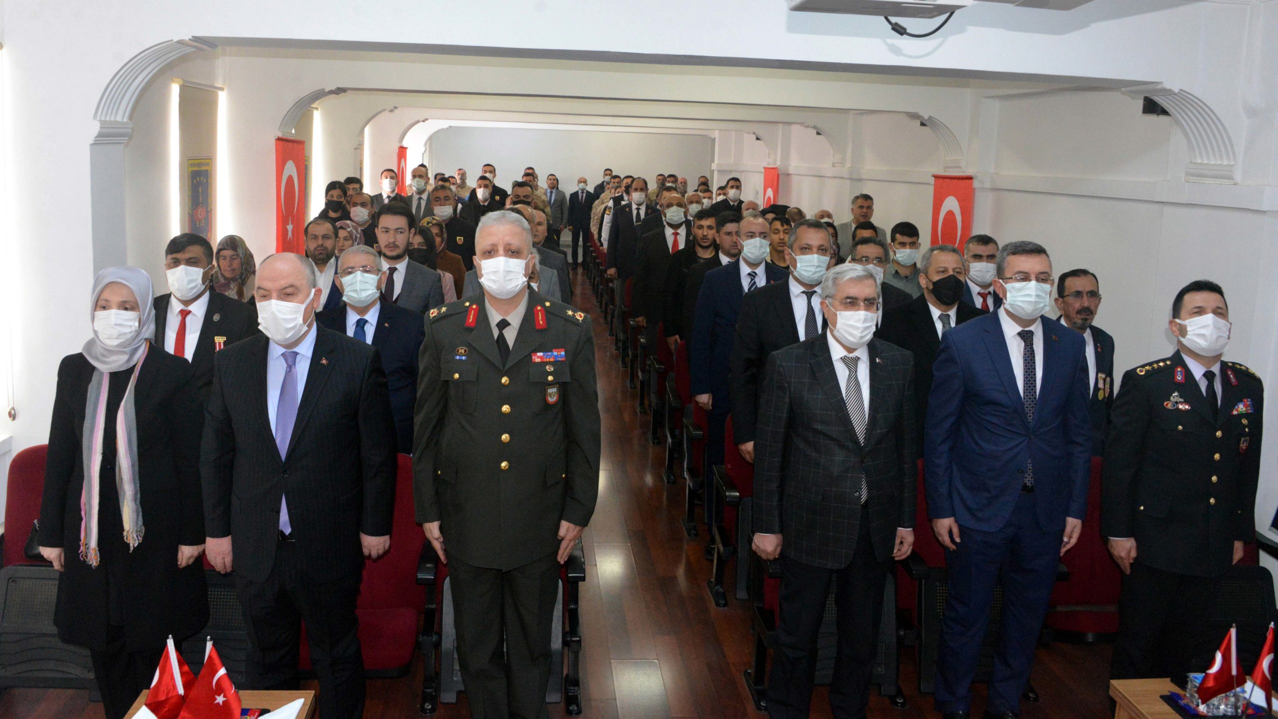 Saygı duruşu ve İstiklal Marşı’nın okunmasıyla başlayan törende Kur’an-ı Kerim okunup dua edildi. Törende konuşan Kahramanmaraş Valisi Ömer Faruk Coşkun, söz konusu vatan olduğunda Türk Milleti’nin, ‘Ölürsek şehit, kalırsak gazi oluruz’ anlayışından hareketle girdiği her savaşta destan yazdığını ve kahramanca mücadele eden birçok ferdinin de şehit ya da gazilik onuruna ulaştığını söyledi.
