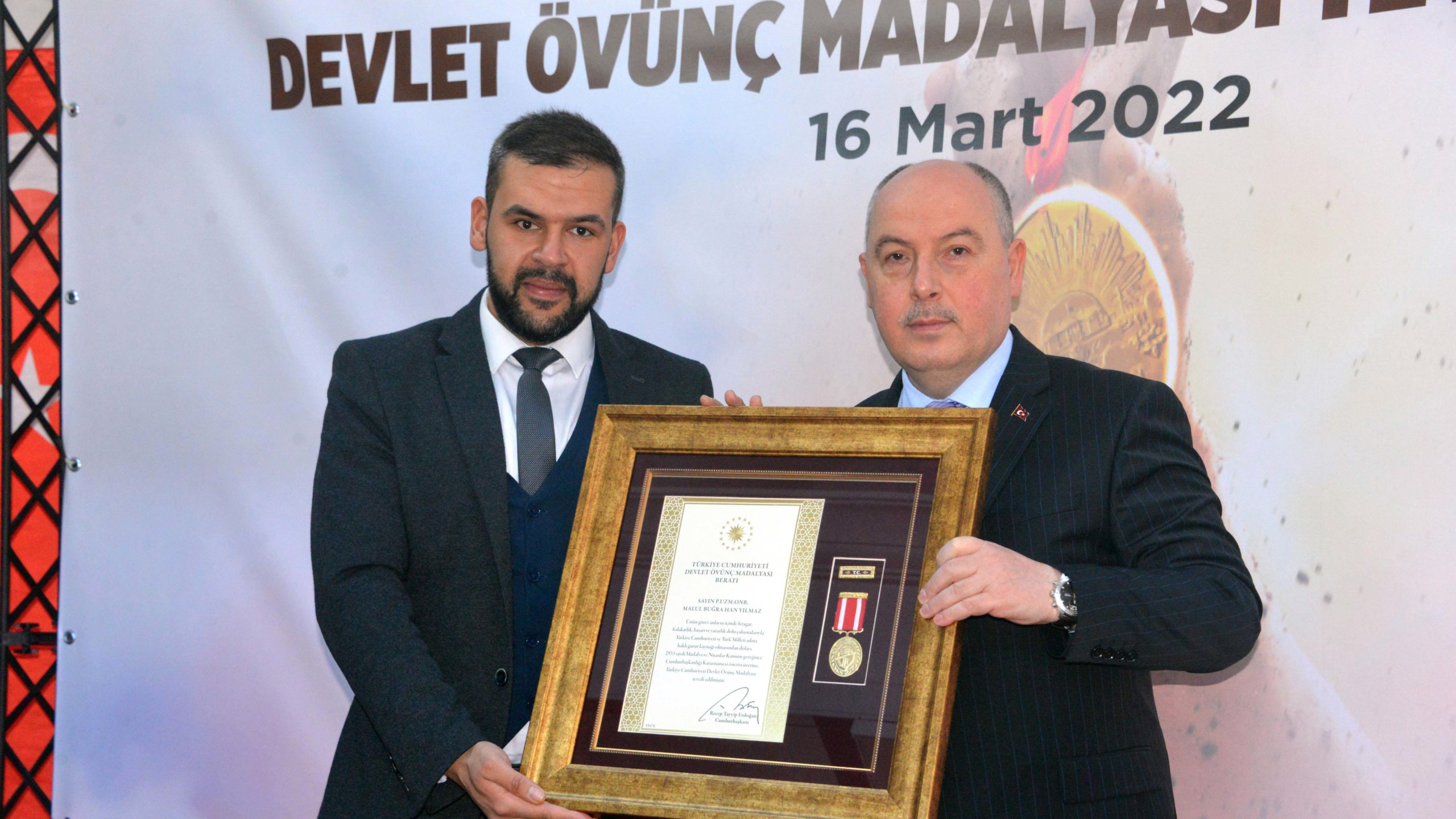 Vali Ömer Faruk Coşkun, konuşmasının ardından şehit Jandarma Uzman Onbaşı Mesut Deniz, şehit Uzman Jandarma Çavuş Eyüp Fidan, şehit Piyade Sözleşmeli Er Ali Özdemir’in ailelerine, gazi Piyade Uzan Ali Sarıbuğa, gazi Jandarma Astsubay Üstçavuş Hayrullah Koska ve gazi Piyade Uzman Çavuş Buğra Han Yılmaz’a devlet övünç madalyası ve beratlarını verdi.