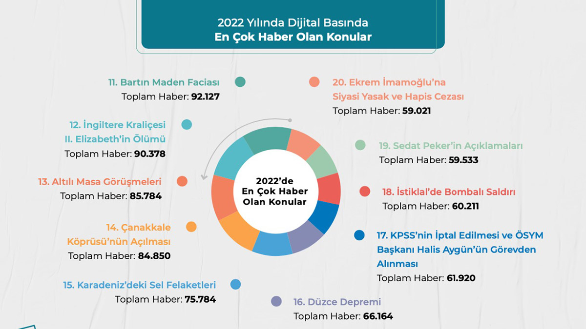 2022’DE DİJİTAL BASINDA EN ÇOK ELE ALINAN İLK 10 KONU VE TOPLAM HABER SAYILARI