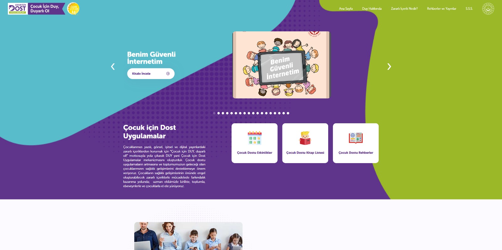 Bakanlık, çocukları dijital dünyada yalnız bırakmamak ve ebeveynleri doğru bilgilerle desteklemek amacıyla ‘Çocuklar Güvende’ web sitesi ve mobil uygulamasını da hayata geçirdi. Aileler ve çocuklar için rehber olma özelliği taşıyan ‘Çocuklar Güvende’ platformunda, dijital cihazlarda ebeveynlerin denetimlerini nasıl sağlayabileceklerine dair bilgilerin yanı sıra çocuklara yönelik özel olarak hazırlanan içerikler de site ve mobil uygulama üzerinden erişime sunuluyor. Platform kapsamında çocuklar, olası acil durumlarda uygulama üzerinden tek tuşla yardım çağrısı yapabilirken; yapılan bildirimler, ilgili birimlere ve 7 gün 24 saat hizmet veren Alo 183 hattına yönlendiriliyor. ‘Çocuklar Güvende’ platformuna mobil uygulama ve cocuklarguvende.gov.tr internet adresi üzerinden ulaşılabiliyor.
