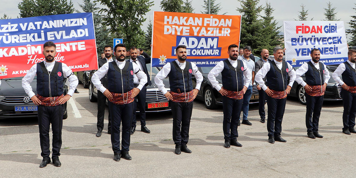 Erzurum’a gelen Dışişleri Bakanı Hakan Fidan’ı, havalimanında Vali Mustafa Çiftçi, AK Parti milletvekilleri, Büyükşehir Belediye Başkanı Mehmet Sekmen ve partililer karşıladı. Bakan Fidan için havalimanında, ‘Aziz vatanımızın yürekli evladı kadim kente hoş geldiniz’, ‘Hakan Fidan diye yazılır, adam diye okunur’ ve ‘Fidan gibi büyüyecek yeni nesil’ yazılı pankartlar açıldı ve bar ekibi gösterisi yapıldı. İlk olarak Erzurum Valiliğini ziyaret eden Fidan, bir süre önce göreve başlayan Vali Mustafa Çiftçi’ye hayırlı olsun dileklerinde bulundu.