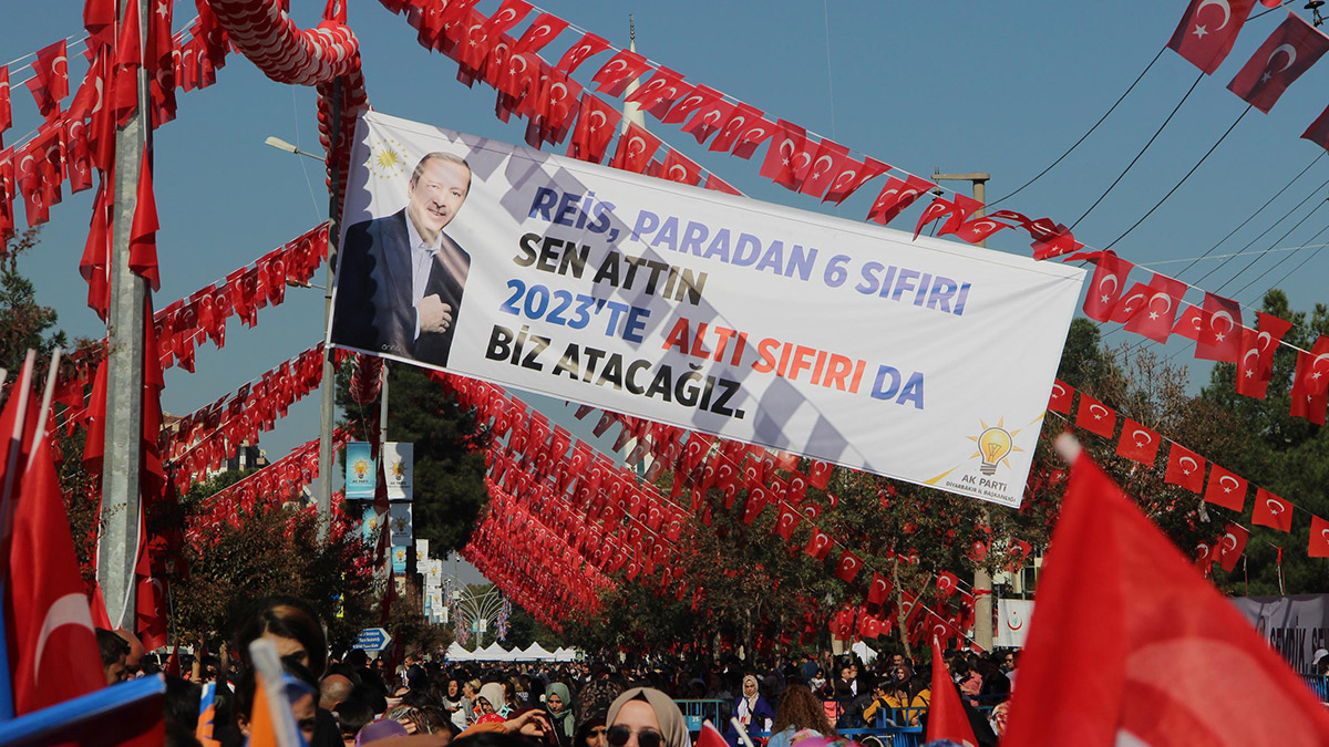 Havalimanında büyük bir kalabalık tarafından karşılanan Cumhurbaşkanı Erdoğan, miting alanına ilerlerken zaman zaman bulunduğu otobüsten yol kenarında kendisini bekleyen vatandaşlarla selamlaştı. İstasyon Meydanı’nda miting alanında platforma çıkan Cumhurbaşkanı Erdoğan, bugün Diyarbakır’ı bir başka güzel gördüğünü ifade ederek, “Güzel de bir pankart asmışlar. Reis paradan 6 sıfırı sen attın. 2023’te altı sıfırı da biz atacağız.