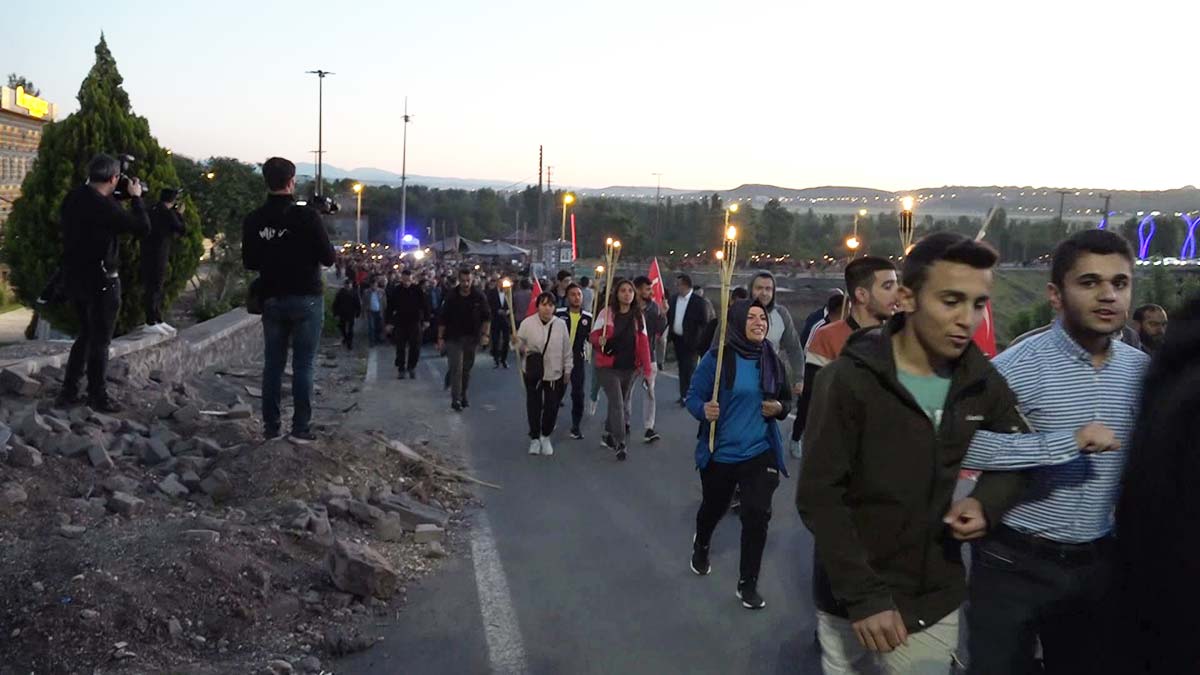 Tekbir ve salavatlarla, fetihte şehit olan sahabenin kabrinin bulunduğu İçkale’deki Hazreti Süleyman Camii’ne kadar gerçekleştirilen yürüyüşte, 100 genç ellerinde bayrak ve meşalelerle kortej oluşturdu. Hazreti Süleyman Camisi’nde kılınan sabah namazının ardından şehit sahabeler için Kur’an-ı Kerim okundu ve dua edildi.