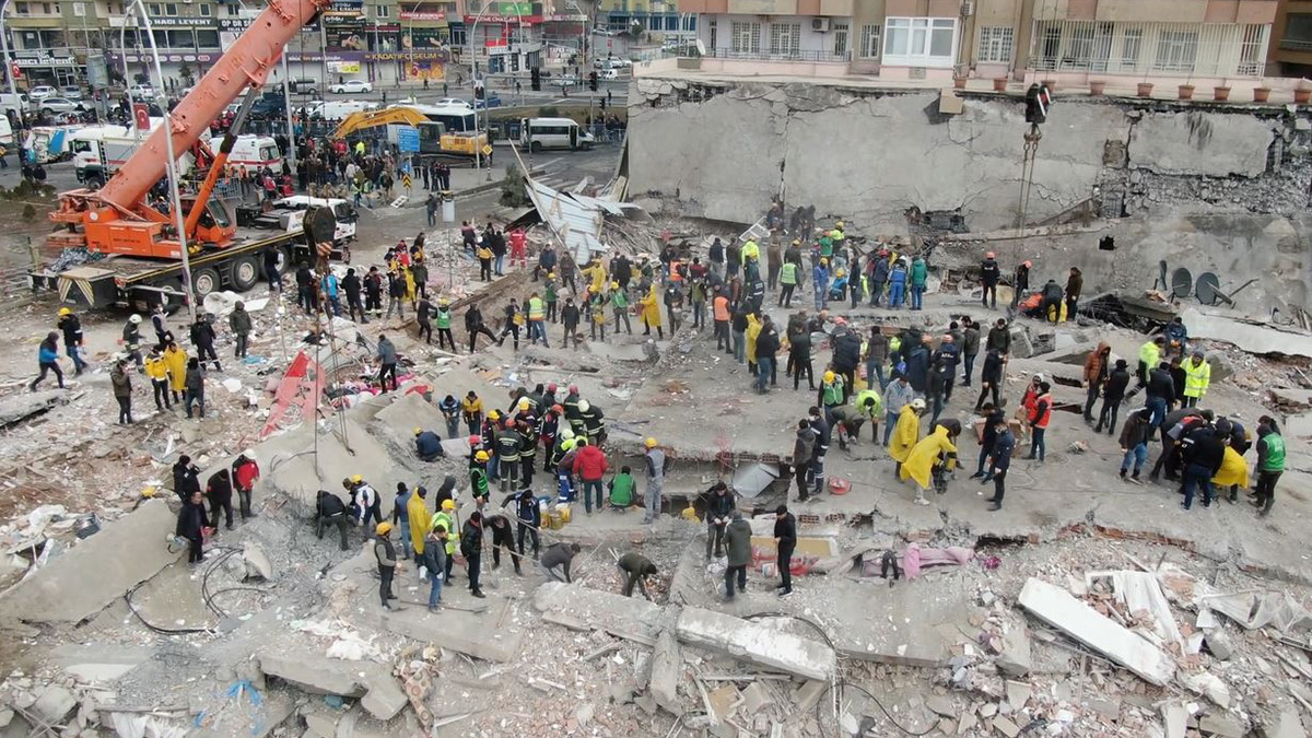 Kahramanmaraş’ta meydana gelen 7.7 ve 7.6 büyüklüğündeki depremlerden etkilenen 10 ilden biri olan Diyarbakır’daki yıkılan binaların enkazları havadan görüntülendi. 1’i boşaltılmış 7 binanın yıkıldığı depremin izleri, dronla gün yüzüne çıktı.
