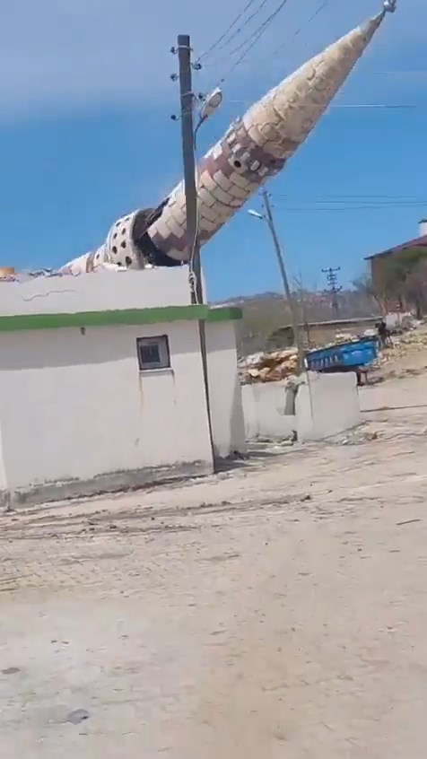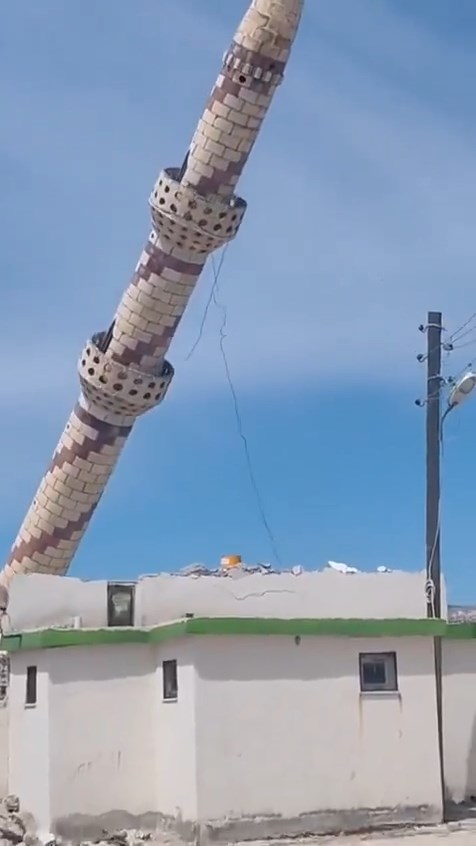 Kahramanmaraş merkezli depremlerin etkilediği illerden Diyarbakır’da hasar gören cami minaresi, kontrollü olarak yıkıldı.