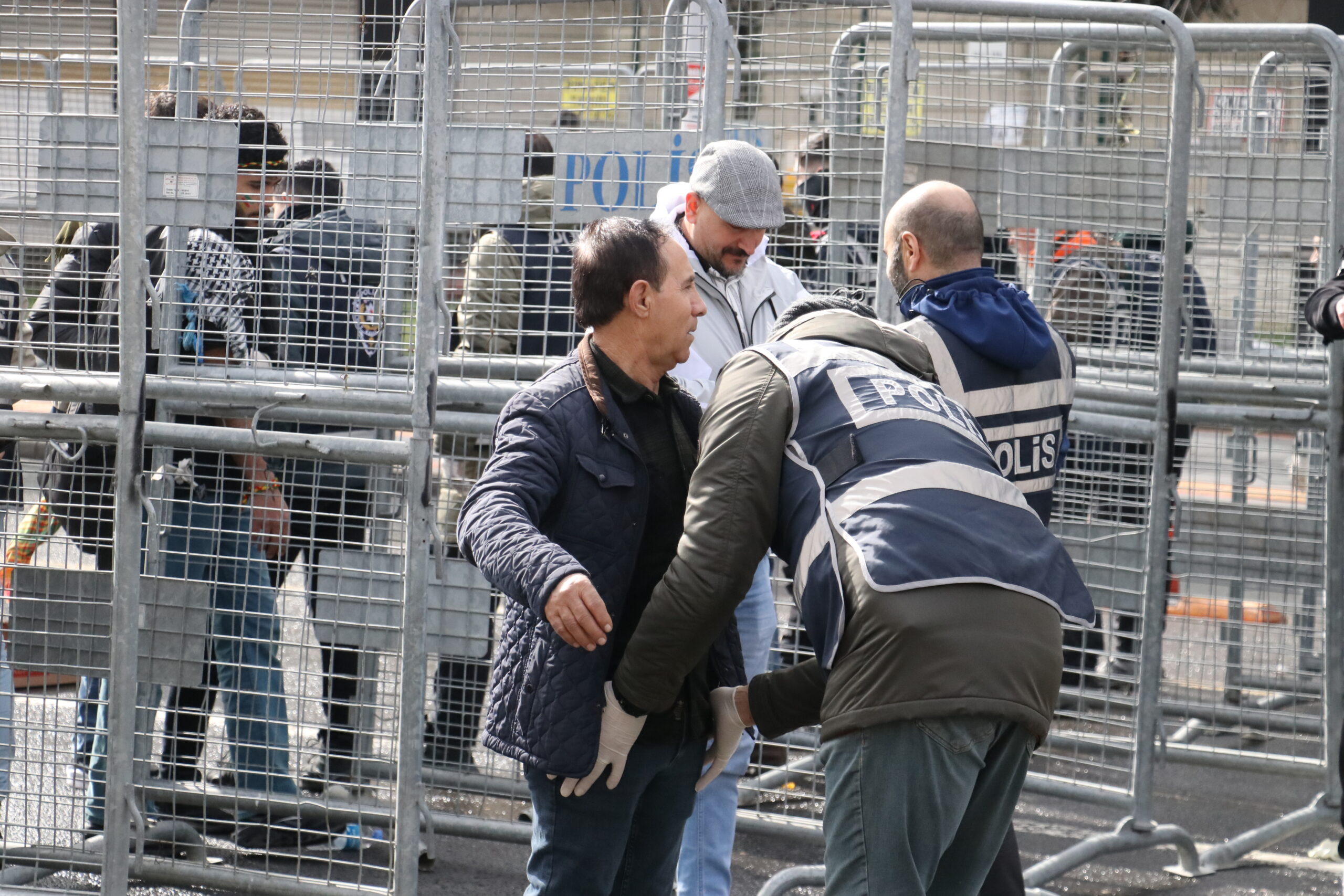 - Katılımcılar, 3 kademeli arama noktalarından geçirilerek alana alındı.