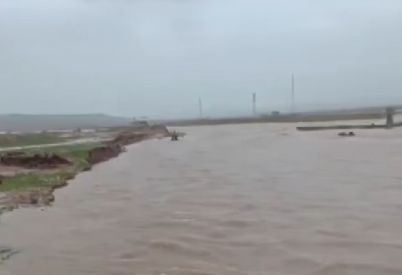 Taşkın nedeniyle köprü su altında kalırken, o anlar çevredekiler tarafından cep telefonu kamerasıyla görüntülendi.
