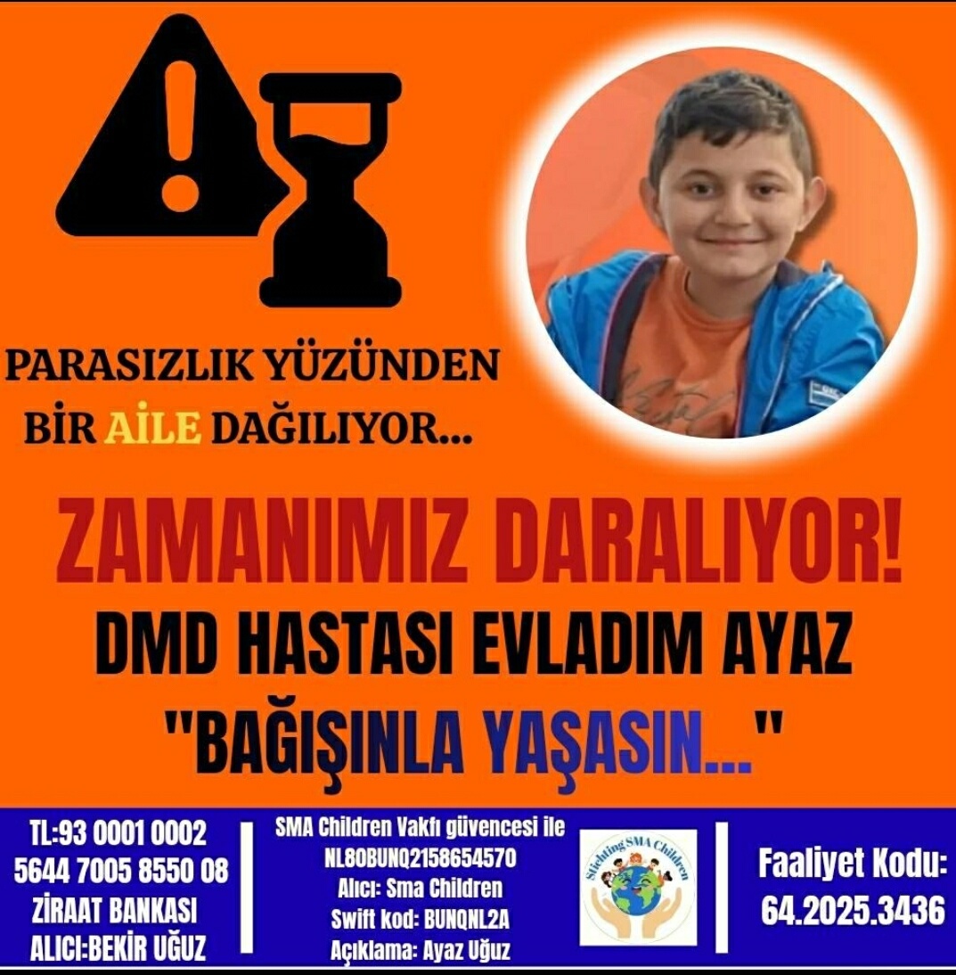 Bir baba olarak oğlunun soruları karşısında çaresiz kaldığını söyleyen Bekir Uğuz, “Ayaz, ‘Baba ben yürümeyi çok özledim’ diyor. Cevap vermekte zorlanıyorum. ‘Neden ben böyleyim?’ diye soruyor. Kendi ihtiyaçlarını kendisi görmek, kimseye muhtaç olmak istemiyor. Teşhis konulduktan sonra büyük bir yıkım yaşadık. Eşimin X kromozomlarından biri arızalıymış, genetik geçişli. Kadınlarda iki X kromozomu oluyormuş; biri arızalı, Ayaz arızalıyla eşleşmiş. Küçük oğlumda sıkıntı yok, o doğduğunda Ayaz 5 yaşındaydı, henüz teşhis konulmamıştı. Ayaz’a 6 yaşında teşhis konulduğunda bu hastalığın tedavisi yoktu. Yüzde 100 hastalığı durdurma garantisi veriyor. Dubai’de 2 milyon 900 bin dolar fiyat verildi. İki ay boyunca Dubai’de kalacak. 24 Temmuz’da başlatılan valilik onaylı yardım kampanyası şu an yüzde 12 seviyesinde. Zaman, Ayaz’ın aleyhine işliyor. Ayaz’ın kollarını kaybetmeden ve solunum sıkıntısı başlamadan önce bu ilaca ulaşması gerekiyor” dedi.
