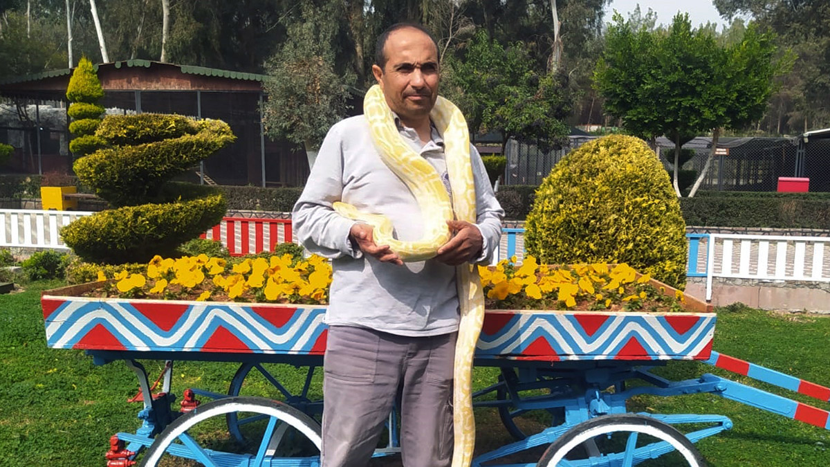 Mersin’in Tarsus ilçesindeki Doğa Parkı’nda dev piton, boa ve anakonda cinsi yılların bakıcılığını Mustafa Karagündüz (48) ile Harun Can (43) yapıyor. Bakıcılar, her gün metrelerce uzunluğundaki piton, anakonda ve boa yılanlarıyla zaman geçiriyor. Toplam 12 devasa yılanı her gün besleyen ve bakımını yapan ikiliyi misafirler de ilgiyle takip ediyor.