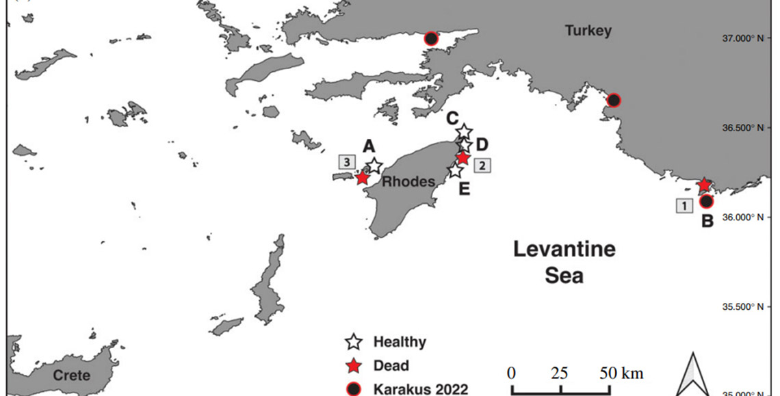 Akdeniz’de istilacı deniz kestanelerinin kitlesel ölümüne dair ilk kanıtlar olarak sunulan araştırmada, bu ölümlerin daha çok Türkiye ve Yunanistan kıyılarında yaşandığı, Rodos Adası ile Kaş Yarımadası yakınlarında yoğunlaştığı belirtildi. Kastellorizo Limanı, Kaş sahili, Anthony Quinn Körfezi, Alimia Adası, Gökova ve Fethiye açıkları gibi alanlarda çalışmalar yapan ekip, bir patojene bağlı kitlesel ölümlerin Yunanistan ve Türkiye’nin Doğu Akdeniz kıyıları boyunca 1000 kilometreden fazla alana yayıldığını açıkladı.
