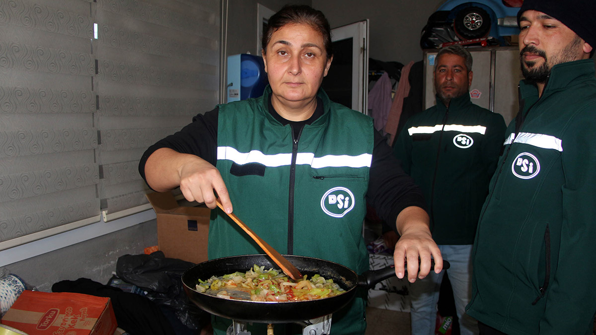 DSİ’nin Perihan Ablası hem enkaz kaldırma çalışmalarına ekskavatörle katılıyor hem de mesai arkadaşlarına kahvaltı hazırlıyor.