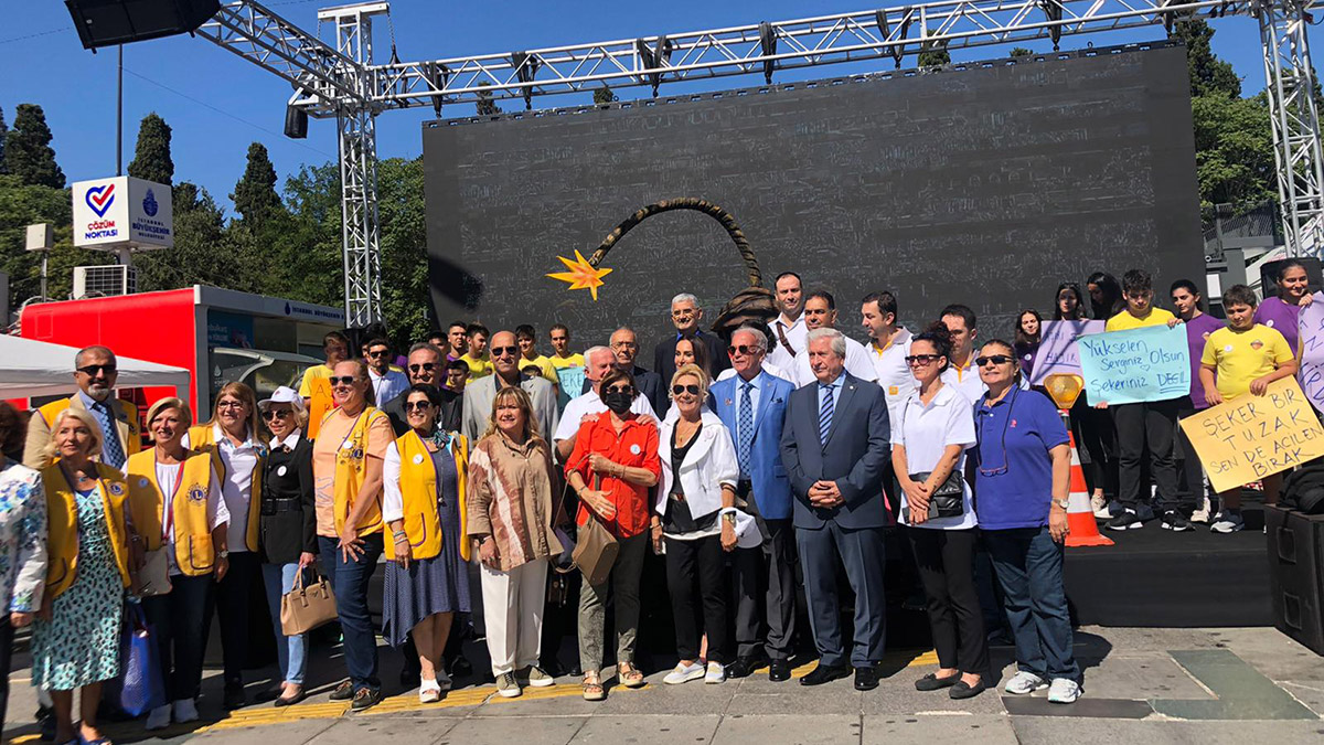 “Türk Böbrek Vakfı olarak dünyada bir ilke imza atıyoruz” diyen vakfın Başkanı Timur Erk, “Çok iddialı bir cümle ama buna inanın. Dünya Şeker Tüketimine Dikkat haftasının birincisini hep birlikte kutluyoruz. Toplumlar geliştikçe beslenme hataları ve artan sağlık sorunları ile karşı karşıya kalıyorlar. Bu sadece ülkemizi değil, tüm dünya ülkelerini ve tüm devletleri ilgilendiren büyük bir sorun. Şu meydanda şimdi geçenlere sorsak şeker hastaları, kronik böbrek hastaları, kalp ve damar hastaları olduğunu rahatlıkla gözlemleyebiliriz. Toplumca bilinç kazanabilmek, neden-sonuç ilişkisinin farkına varabilmek gerekli önlemlerin hem bireysel hem toplumsal, kanun koyucu bazında ele alınmasını sağlamak için dikkatinizi çekmek istedik. Lütfen bu etkinliği Türkiye düzeyinde yaygınlaştıralım” dedi.