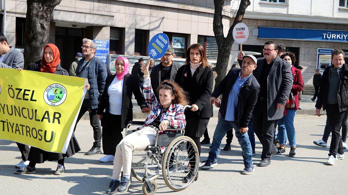 Zonguldak’ta 27 Mart Dünya Tiyatro Günü kapsamında düzenlenen etkinlikte engelli oyuncular sanat için engelleri aştılar.