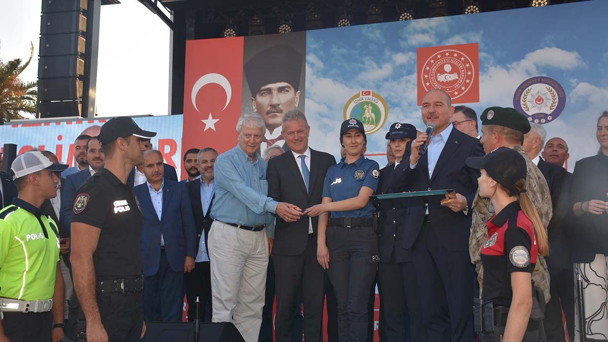 İçişleri Bakanı Süleyman Soylu, İzmir İl Emniyet Müdürlüğü’ne tahsis edilen 214 binek araç, 5 minibüs, 3 motosiklet olmak üzere toplamda 222 aracın teslim törenine katıldı. Konak Meydanı’nda gerçekleştirilen törende Bakan Soylu’nun yanı sıra, İzmir Valisi Yavuz Selim Köşger, Emniyet Genel Müdürü Mehmet Aktaş, İzmir İl Emniyet Müdürü Mehmet Şahne, AK Parti İzmir İl Başkanı Kerem Ali Sürekli, milletvekilleri, il başkanları yer aldı.