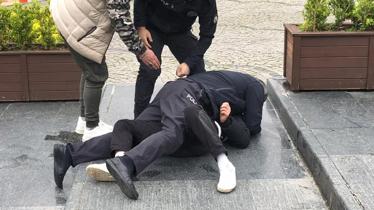 Kavga ve polisin taraflara müdahalesi görüntülenirken, şüphelilerin emniyetteki işlemleri sürüyor.