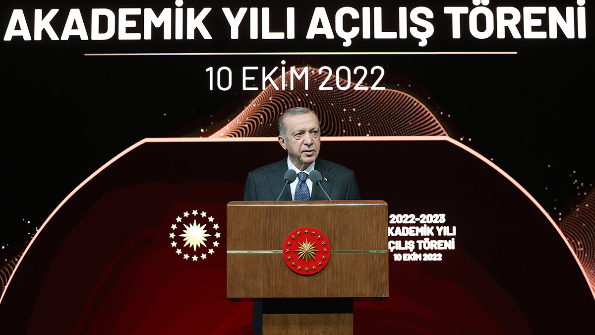 Cumhurbaşkanı Erdoğan, Beştepe Millet Kongre ve Kültür Merkezi’nde ‘2022-2023 Yükseköğretim Akademik Yıl Açılış Töreni’nde konuştu. Erdoğan, soğuk savaşın bitmesiyle barış, istikrar ve özgürlükler adına yeşeren umutların son yıllarda yerini korkuya, endişeye hatta kimi ülkelerde faşizme bırakmaya başladığını belirterek, “İçinde bulunduğumuz 100 yıl daha önce yapılan tahminlerin aksine refah, huzur, adalet asrı olmaktan ziyade bir nevi çatışmalar çağına dönüşüyor.