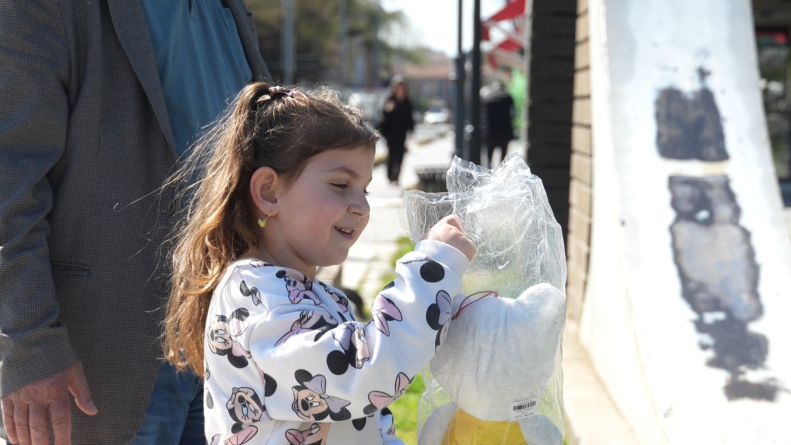Elinde oyuncaklarla yürüyen belediye personeli senaryo gereği çocukların yanından geçerken oyuncağı düşürdü. Çocukların yerden alıp personele teslim ettiği oyuncaklar, kendilerine hediye edildi.
