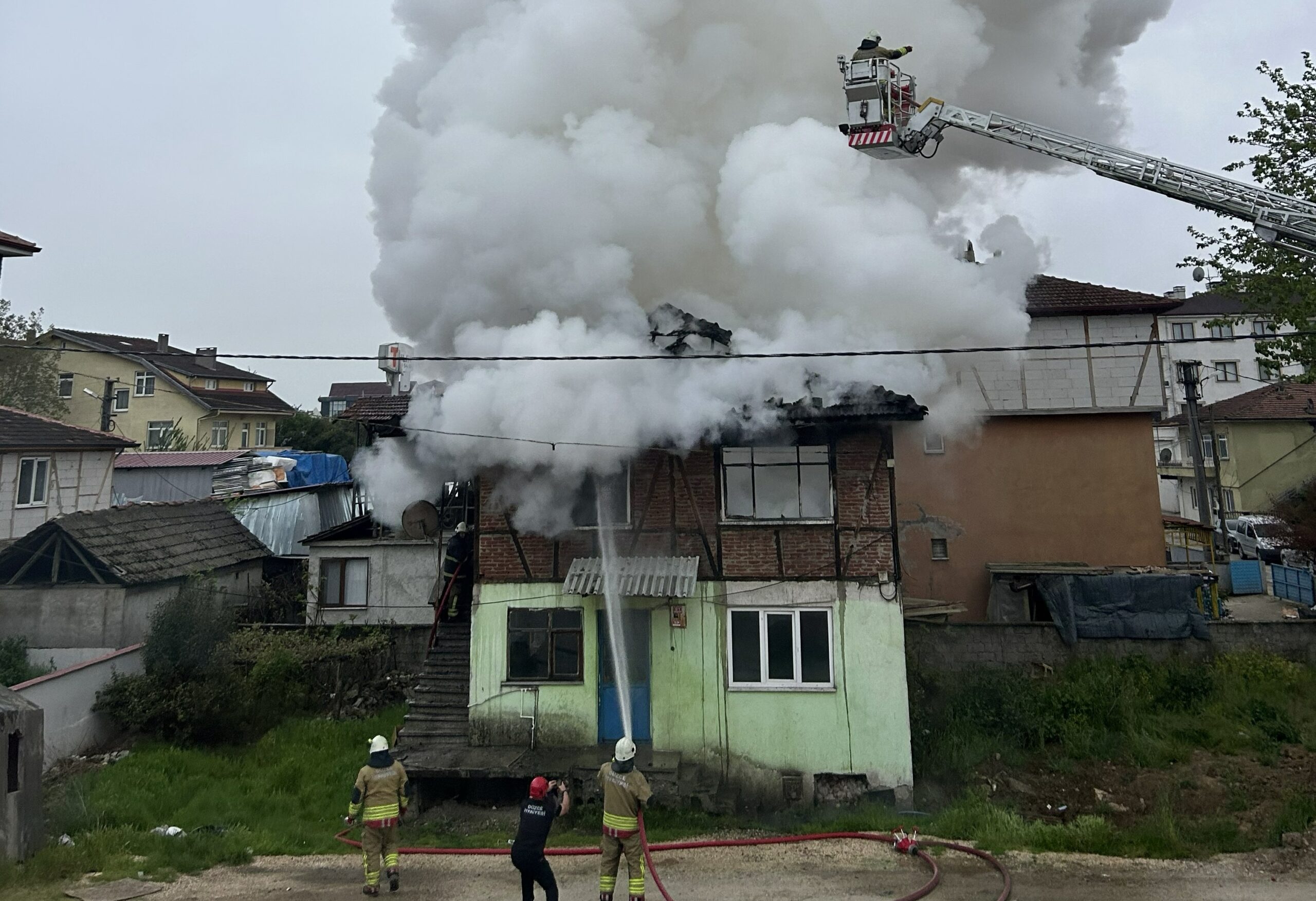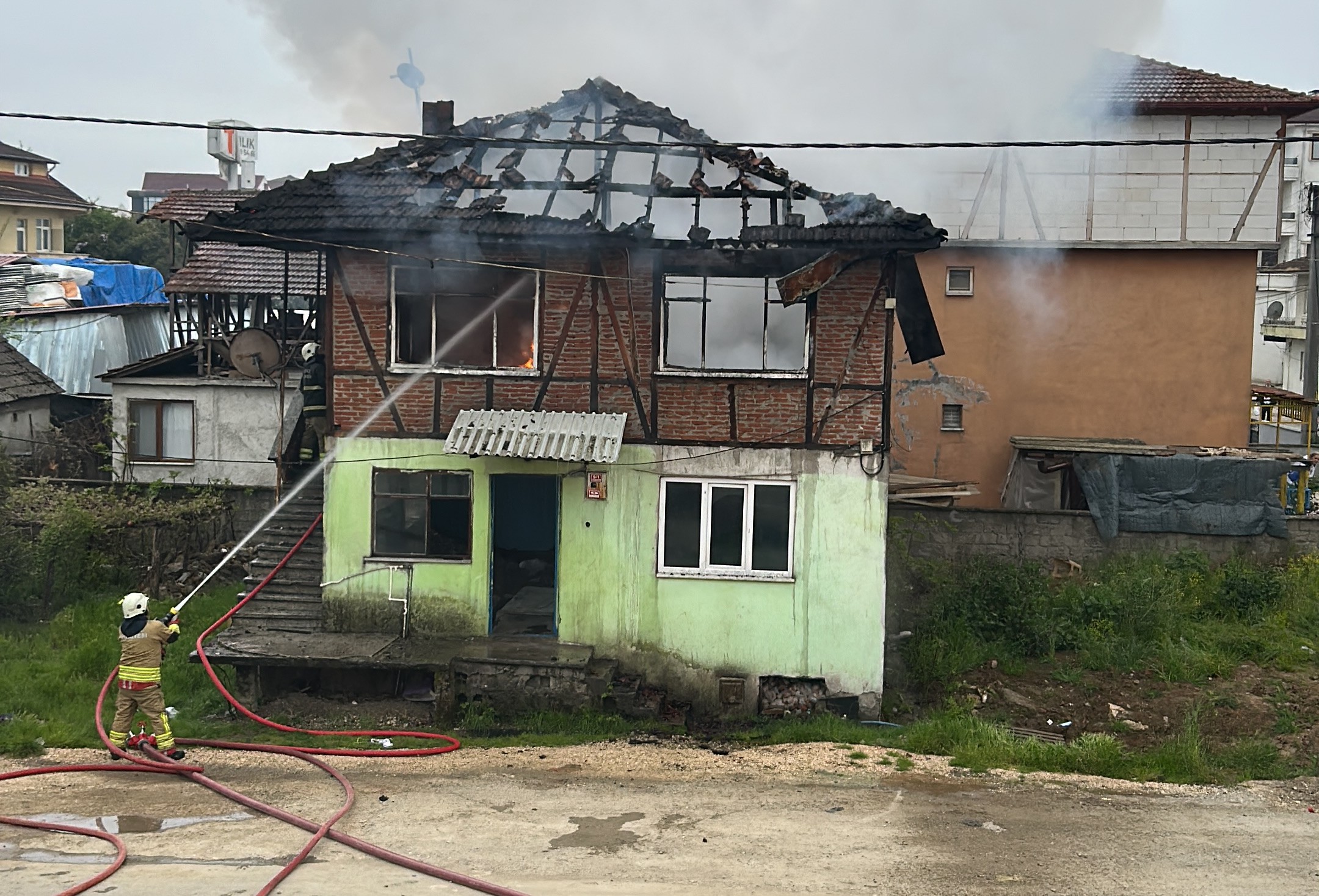 Düzce’de 2 katlı ev çıkan yangında kullanılamaz hale geldi.