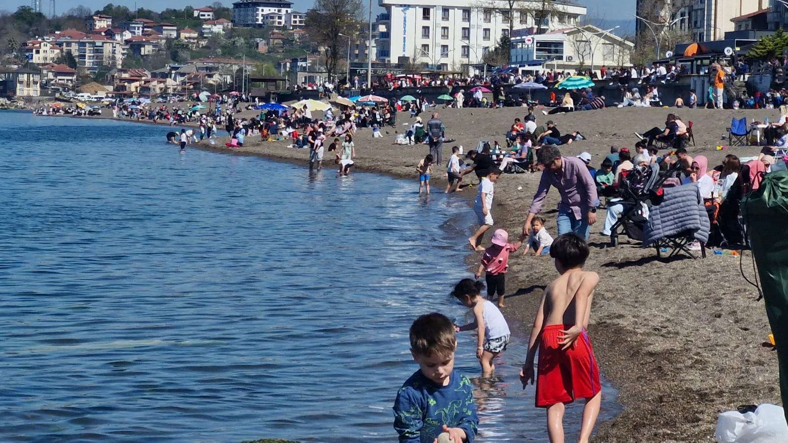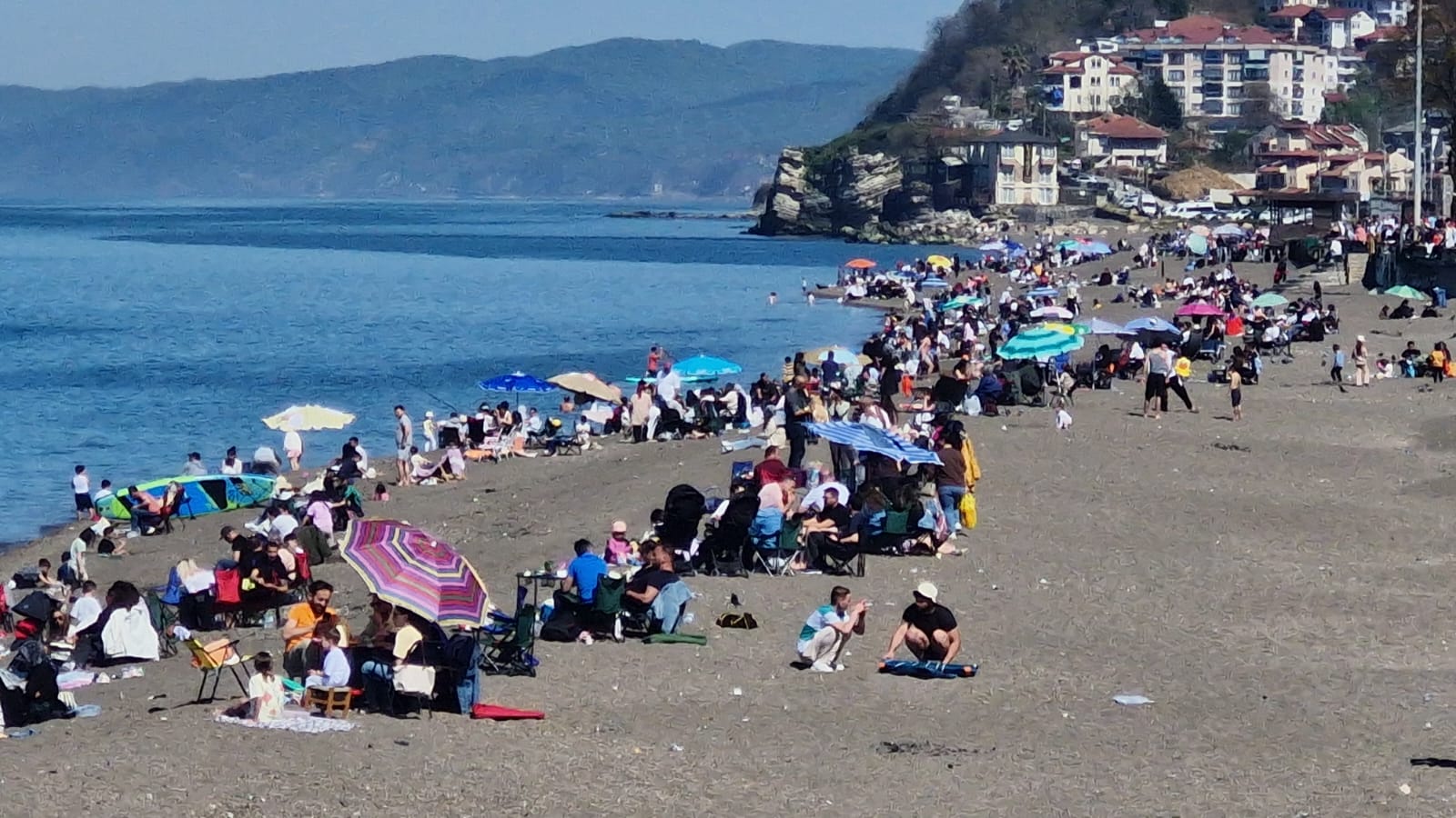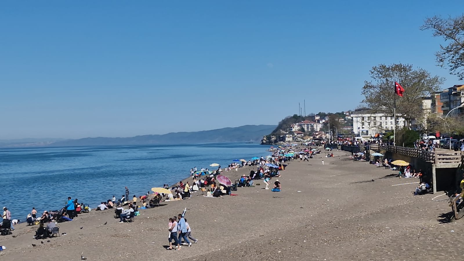 Düzce’nin Akçakoca ilçesinde hafta sonu güneşli havayı fırsat bilenler Çuhallı Plajı’na akın etti.