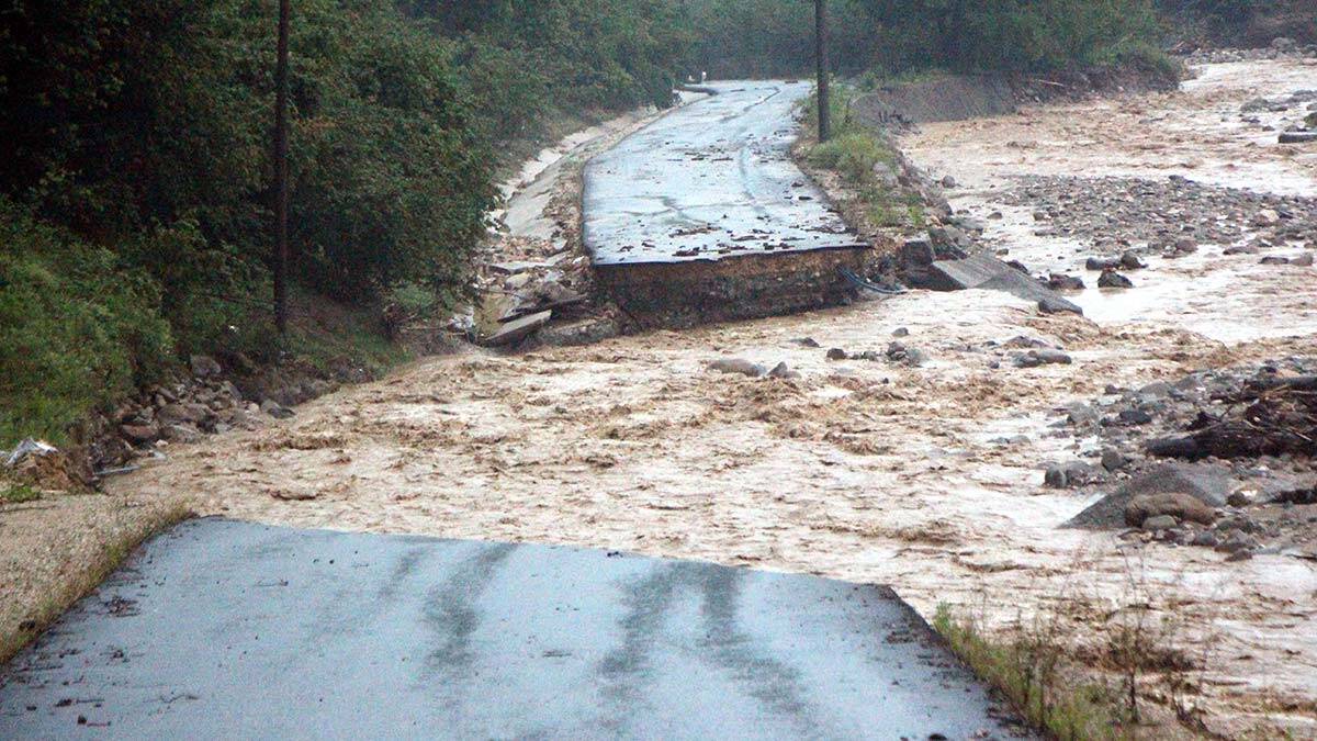 Düzce’de selin hasarı gün ağarınca ortaya çıktı. 2 yıl önce yaşanan sel felaketi nedeniyle 7 kişinin hayatını kaybettiği Esmahanım köyüne giden yol çöktü. Çöken yolun görüntüsü dron kamerasına yansıdı.