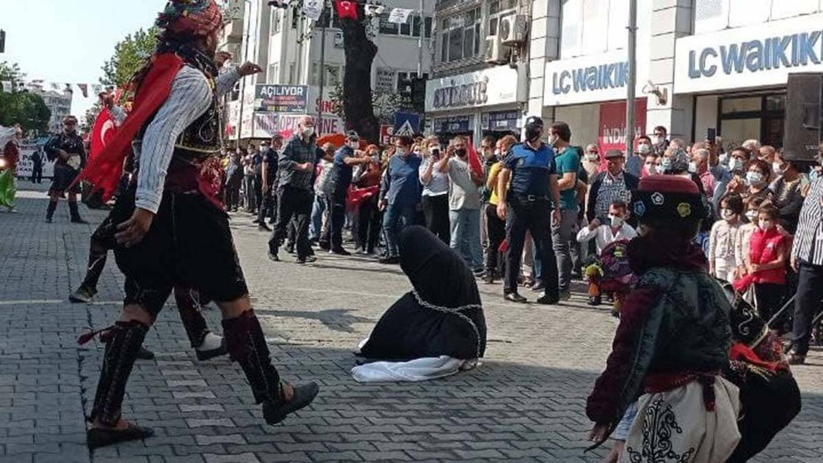 Edremit Kaymakamı; ilçenin düşman işgalinden kurtuluşu kutlamalarında düzenlenen temsilde kadının zincire vurulduğu gösteri nedeniyle merkeze çekildi