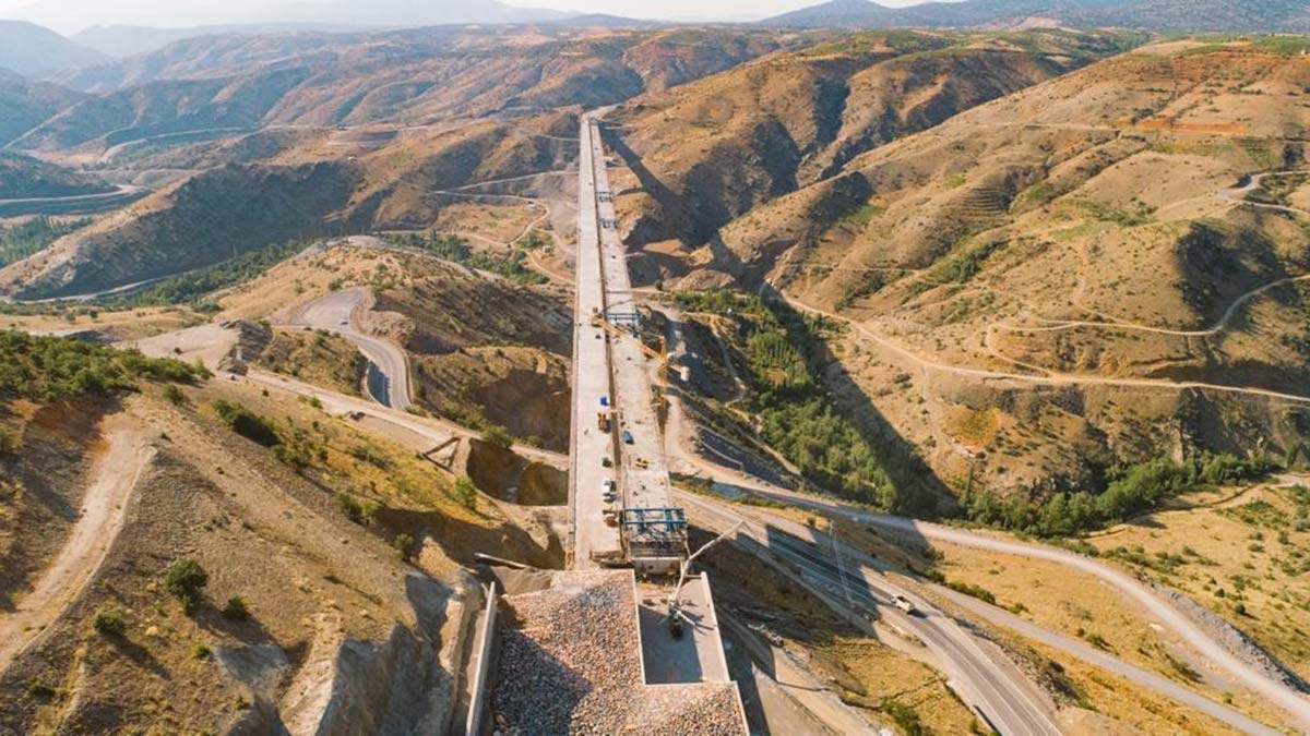 Türkiye’nin en yüksek ayak uzunluğuna sahip Eğiste Hadimi Viyadüğü’nde, temel ve elevasyon imalatları ile sağ-sol tabliye imalatı tamamlandı.