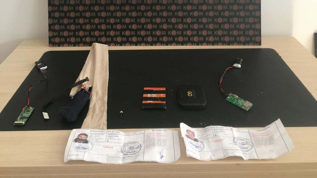 Gözaltına alınan İ.T. ve M.Ö., İlçe Emniyet Müdürlüğü Kaçakçılık ve Organize Suçlarla Mücadele Grup Amirliği ekiplerine teslim edildi. Şüphelilerin ifadelerinde bundan önce de birçok kez sınava girdiklerini, başarısız olduklarını ve tekrar başarısız olmamak amacıyla böyle bir düzenek hazırladıklarını söyledikleri öğrenildi. İ.T. ve M.Ö.’nün, düzenekleri Edirne’den 3 biner lira karşılığında temin ettikleri kaydedildi.