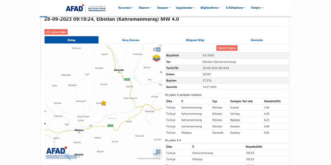AFAD verilerine göre; Elbistan’da 4 büyüklüğünde deprem meydana geldi.