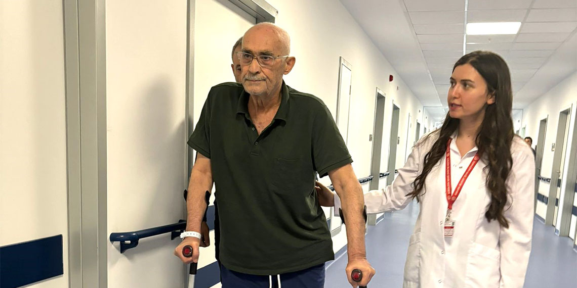 Prof. Dr. Hatice Bodur ise Mehmet Osman Kurtoğlu’nun hastaneye geldiğinde birçok problemi olduğunu söyleyerek, “Çünkü üzerine güneş paneli düşmüştü. Sağ alt ekstremitesinde parçalı bir kırığı vardı. Sol alt ekstremitesi amputeydi. Biz de kendisine burada gerekli tedavileri elimizden geldiğince gösterip protez uygulamasını yaptık. Ardından bu protez uygulamasının rehabilitasyonunu yaptık. Bu kesinlikle bir ekip işi. Hemşirelerimiz, fizyoterapistlerimiz bütün ekip olarak gerekeni yaptık. 2 hafta önce kadar hastamız protezinin de takılmasıyla birlikte ayağa kalktı. Yardımcı yürüme araçlarından kanedyenlerle adım atabiliyor. Önümüzdeki günlerde daha da iyiye gideceğini bekliyoruz. Şu anda rehabilitasyon süreci devam ediyor; ancak sürecin sonuna çok yaklaştık. Yakında taburcu ederiz” ifadelerini kullandı.