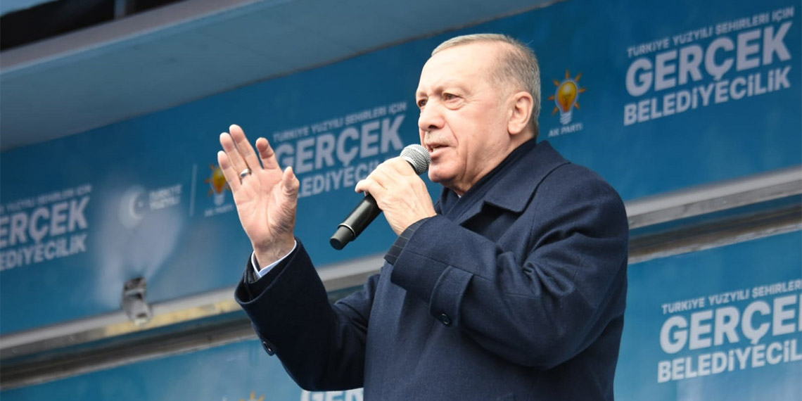 “Her fırsatta altını çizerek tekrar ettiğim gibi bizim siyasetimiz eser ve hizmet siyasetidir” diyen Cumhurbaşkanı Erdoğan, “Bizim ne dünün CHP’si gibi arkamızda tek parti faşizmin utancı var ne de bugünün CHP’si gibi kendi iç kavgasından başını kaldıramayan, yalan üzerine kurulu bir siyaset tarzımız var. Biz, tüm samimiyetimizde ve gücümüzle ülkemizin önünde yeni ufuklar açmanın şehirlerimizi de bu vizyona ayak uyduracak yönetimlere kavuşturmanın gayreti içindeyiz. Bu anlayışta hasret gidermek ve vatandaşımızın sandıkta desteğini istemek için gittiğimiz hemen her şehirde rakiplerimize meydan okuyoruz.