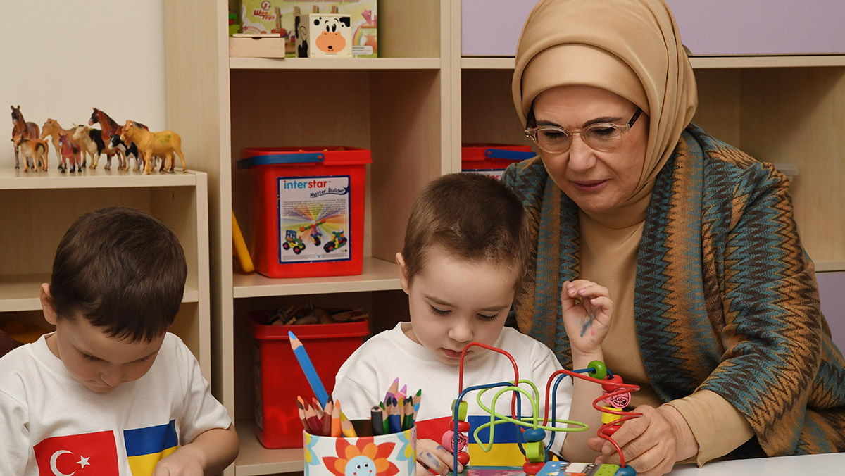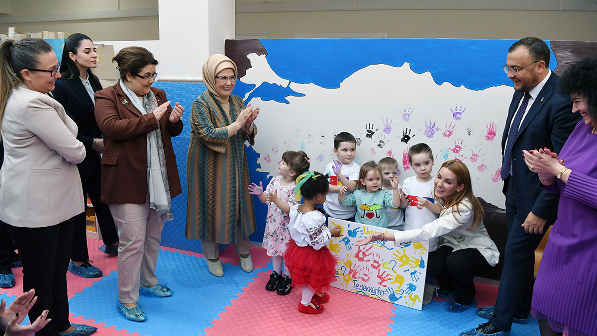 Cumhurbaşkanı Recep Tayyip Erdoğan’ın eşi Emine Erdoğan, Ukraynalı yetim çocukları ziyaret etti.