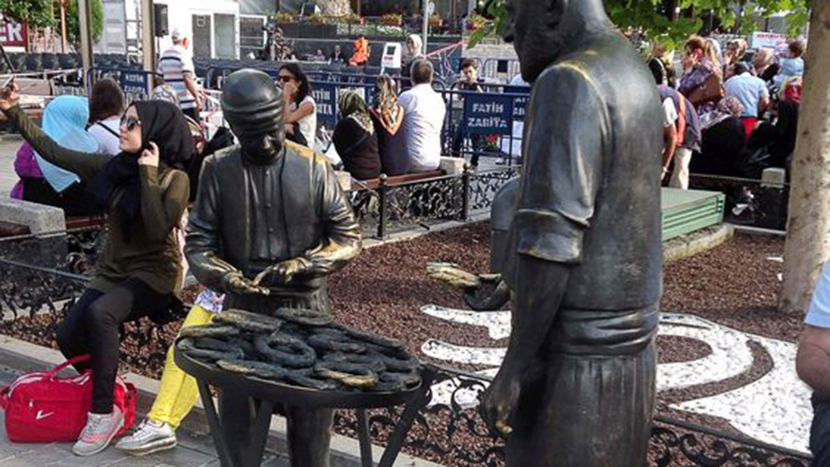 Fatih Belediyesi tarafından, 2016 yılında heykel sanatçıları Mustafa Burnazoğlu ve Ersin Alyakut’a yaptırılan simitçi heykelinin 30 bronz simiti çalındı. Parasını denkleştirmeye çalışan bir çocuğa simit veren simitçiyi tasvir eden heykelin yapımı 3 ay sürmüştü.