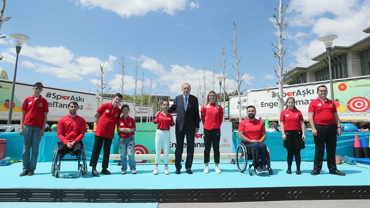 Cumhurbaşkanı Erdoğan, Beştepe Millet Kongre ve Kültür Merkezi’nde düzenlenen ‘Spor Aşkı Engel Tanımaz’ Özel Eğitim Okulları’na Spor Malzemesi Dağıtım Töreni’nde konuştu. Cumhurbaşkanı Erdoğan, özellikle son dönemde engelli bireylerin sporun farklı branşlarında dünya çapında başarılara imza attıklarını dile getirerek, “Engelli kardeşlerimizi mücadeleleri, gayretleri ve emekleri için özellikle milletim adına tebrik ediyorum. Sporcu kardeşlerimizin şahsında şanlı bayrağımızı her yerde gururla dalgalandıran tüm sporcularımıza teşekkürlerimi iletiyorum.