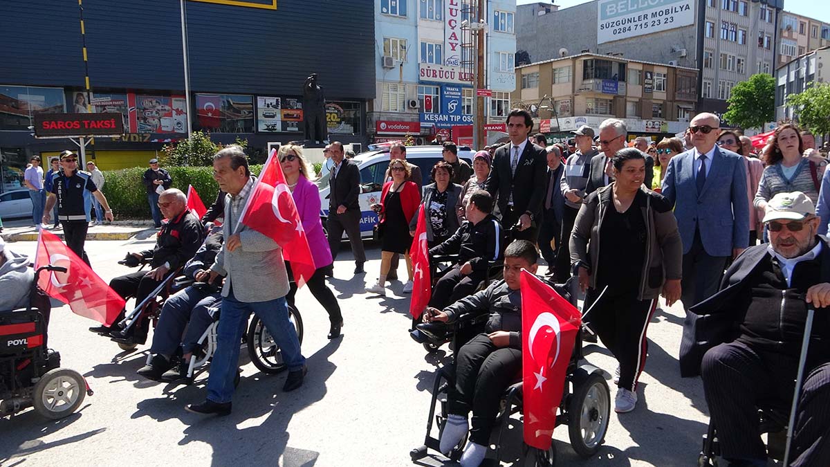 Keşan Belediyesi’nce 10-16 Mayıs Engelliler Haftası nedeniyle kortej yürüyüşü ve program düzenlendi. Keşan Kent Müzesi önünde oluşturulan kortej, Belediye bandosu eşliğinde Cumhuriyet Meydanı’na yürüdü. Korteje, Keşan Kaymakamı Cemalettin Yılmaz, Belediye Başkanı Mustafa Helvacıoğlu, daire amirleri, siyasi parti ve sivil toplum kuruluşlarının temsilcileri, engelliler ve öğrenciler katıldı. Atatürk Anıtı önündeki programda çelenk konuldu, saygı duruşunda bulunuldu, ardından da İstiklal Marşı okundu.