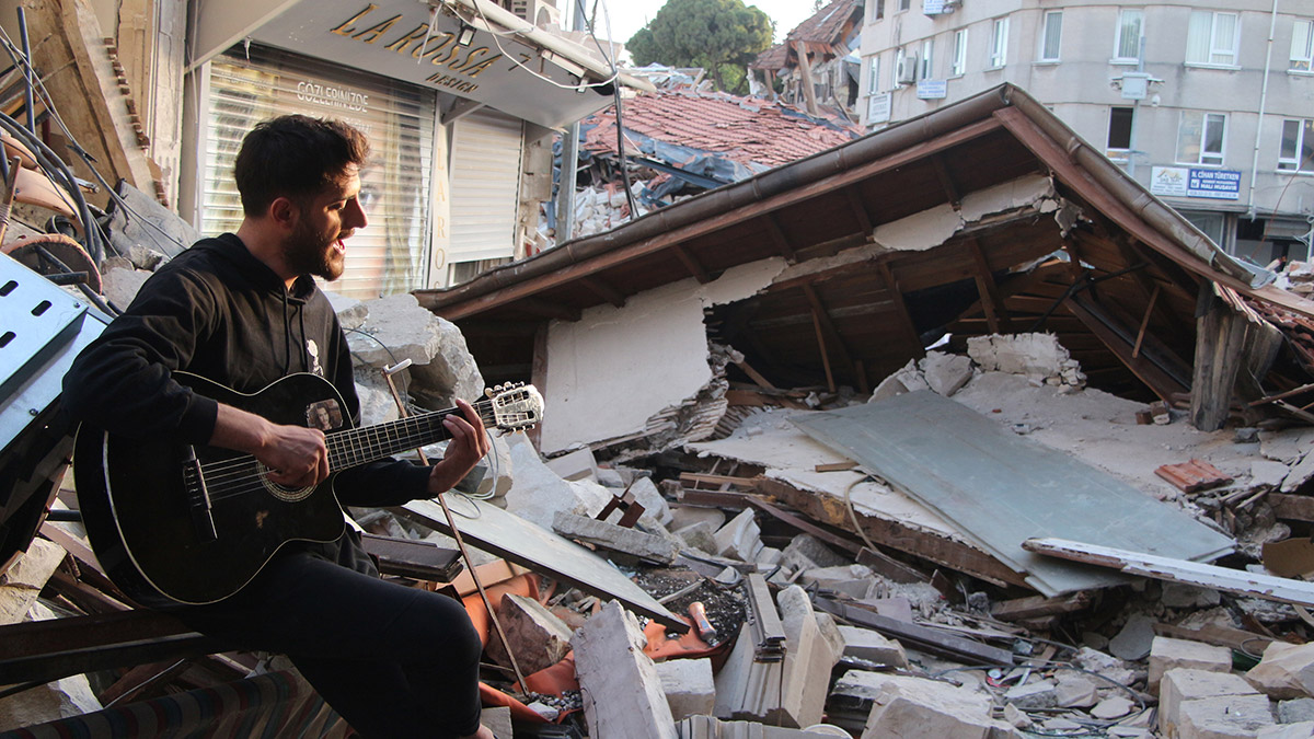 Hatay’ın Antakya ilçesinde gitar çalıp, müzisyenlik yapan Cem Demirel (28), deprem felaketinin ardından yeniden sokaklara dönüp, ‘Hatıran Yeter’ adlı şarkıyı seslendirdi. Enkaza dönen sokaklar ile depremden önceki hareketli sokakları bir araya getirip, video hazırlayan Demirel, “Duygularımı, acılarımı kelimelere dökmek zor oluyor, tarif edemiyorum. Ben de bir şarkı ile tarif etmek istedim” dedi.