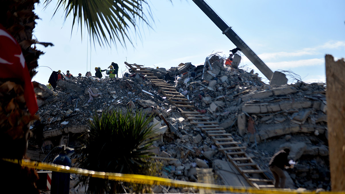 Hatay’ın İskenderun ilçesindek 8 kişinin yaralı olarak kurtarıldığıi 8 katlı Eda Apartmanı’nda bir taraftar arama-kurtarma çalışmaları sürerken bir taraftan da enkaz kaldırma işlemleri devam ediyor.