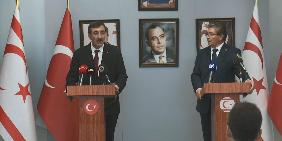 Resmi temaslarda bulunmak üzere Kuzey Kıbrıs Türk Cumhuriyeti’ne (KKTC) giden Cumhurbaşkanı Yardımcısı Cevdet Yılmaz, KKTC Başbakanı Ünal Üstel ile Ercan Havalimanı’nda basın toplantısı düzenledi. Yılmaz, dijital medyada tarihin senaryolarla değiştirilmeye çalışıldığını vurgulayarak, “Enosis de EOKA çetelerinin de yaptığı mezalim de tarihin sayfalarında duruyor. İnsanların hafızalarında duruyor. Ne yaparlarsa yapsınlar, tarihi gerçekler ortada” dedi.
