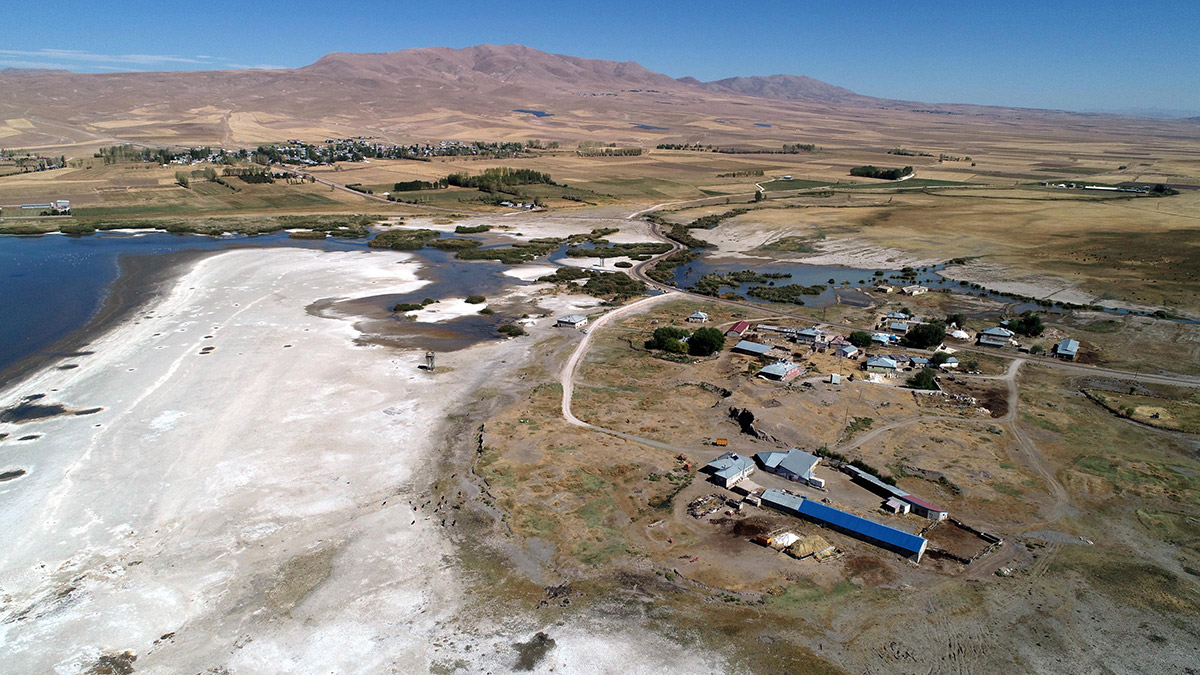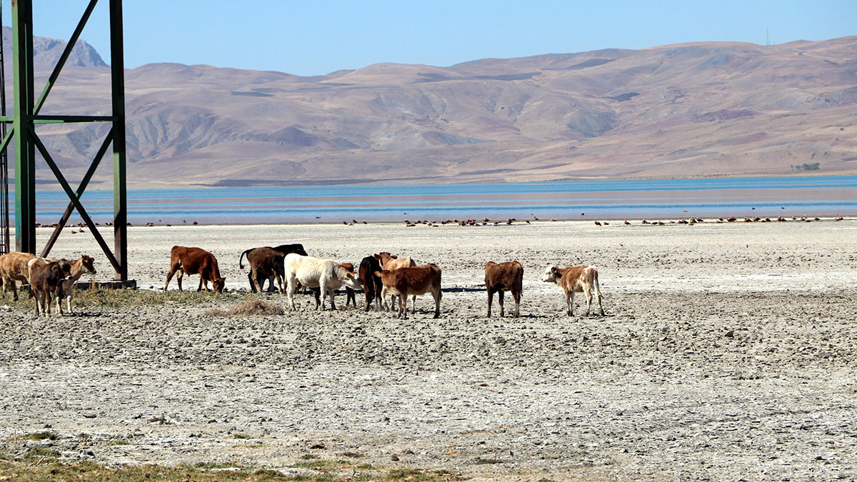 Van Gölü’ndeki gözle görülür çekilmenin ardından Türkiye’deki 453 kuş türünün yarısını barındıran havzadaki Erçek Gölü de metrelerce çekildi.